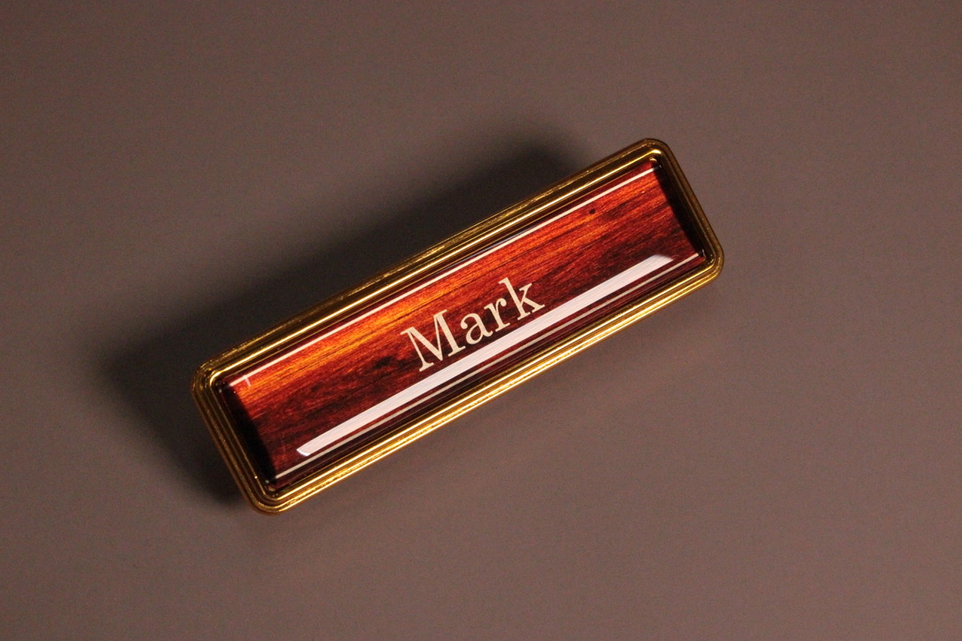 今までの名札の概念を一新しました。UVダイレクト印刷で加工すれば1個からフルカラーでつくれます。グラデーションも可能です。書体も自由、短納期にも対応します。