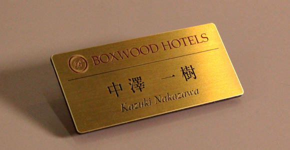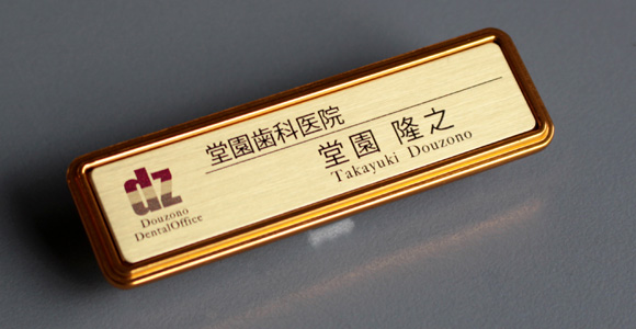 ゴールドやシルバーの名札プレート、フレームを組み合わせることで、高級感や立体感が生まれ、他の名札と差別化を図り印象付けることができます。