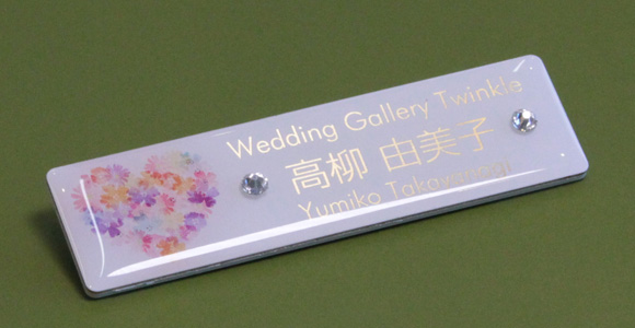 スワロフスキー付き名札は、名札にスワロフスキーのクリスタルを装飾したもので、その輝きと高級感が特徴です。通常のプラスチックや金属製の名札とは一線を画し、華やかで洗練された印象を与えます。